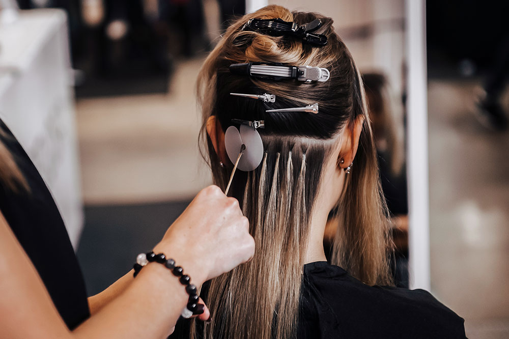 Zorgvuldige plaatsing van hairextensions